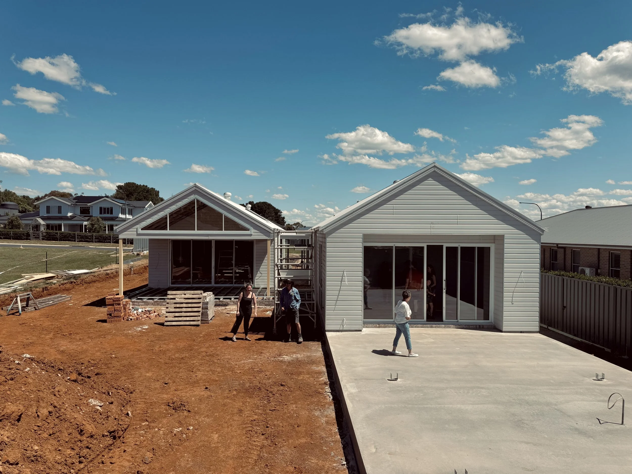 I had the chance on a weekend trip back from Canberra to check in on progress on the Crookwell residence. The home has achieved lockup, which is great progress in the way towards a pre-christmasy completion. The external recycled brickwork, and interior reverse brick walls are now laid, and plastering works taking place. I’m thrilled with the way the spaces flow and can’t wait for landscaping to be installed to help soften the home.